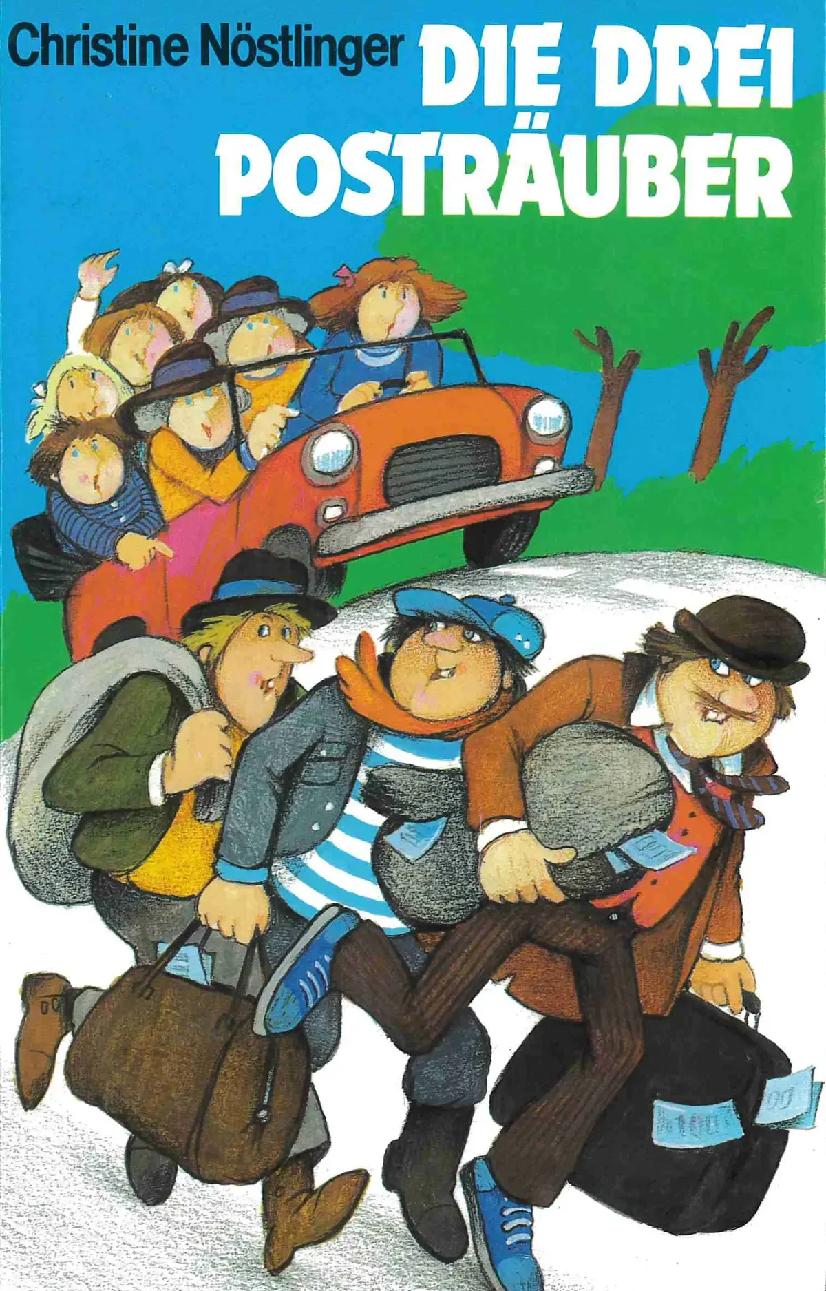„Die drei Posträuber“ ist eine humorvolle Krimi-Parodie, erzählt in einer Kombination aus Roman und von Nöstlinger gezeichneten Comicelementen. Das Buch erschien erstmals 1971, ein Jahr nach Nöstlingers sensationellem Debüt „Die feuerrote Friederike“. 1998 wurde der Stoff fürs Kino verfilmt (Regie: Andreas Prochaska).